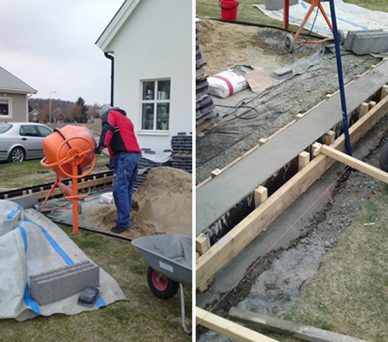Så nu är grunden till muren klar, så nu är nästa steg att mura med lecablock ovanpå detta, till lagom höjd. :-)